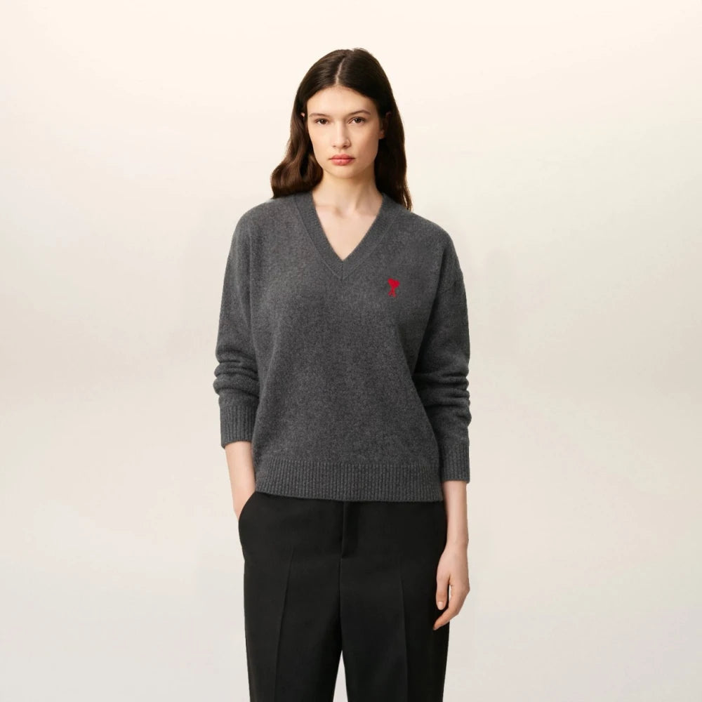 아미 드 꾀흐 엠브로이더리 V넥 울 스웨터