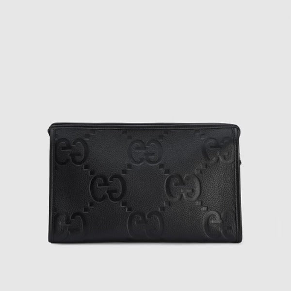 구찌 점보 GG 지퍼 파우치 블랙 레더