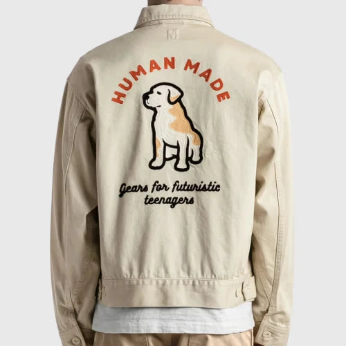 휴먼 메이드에서 나온 리트리버 그래픽 디자인을 자수로 수 놓은 워크 자켓입니다.