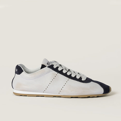 미우 미우 플럼 나파 레더 앤 스웨이드 스니커즈 화이트 블루