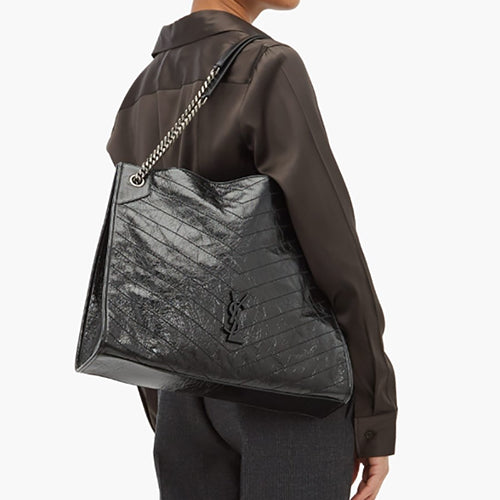 생로랑 니키 쇼핑라지 빈티지 레더 블랙
