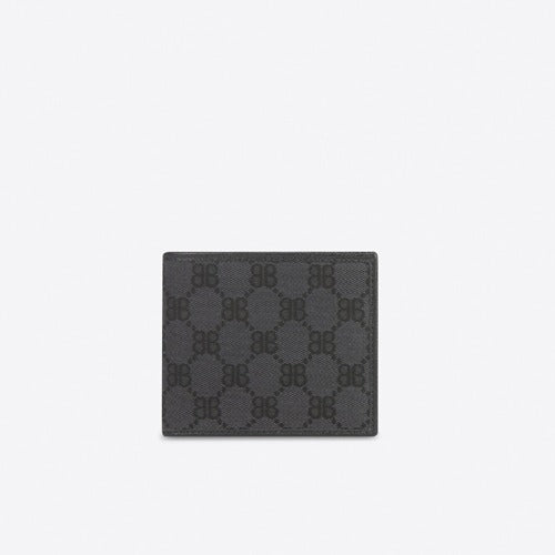구찌 X 발렌시아가 코팅 캔버스 해커 반지갑 블랙