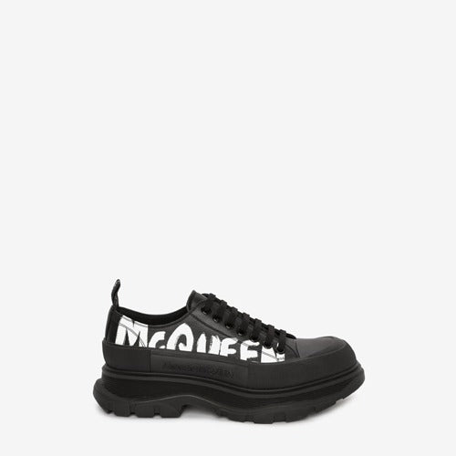 알렉산더 맥퀸 트레드 슬릭 그래피티 로고 레이스 업 블랙