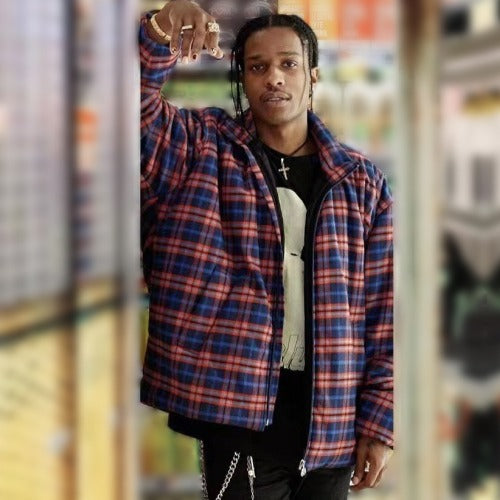 발렌시아가 체크 코쿤 집업 자켓
