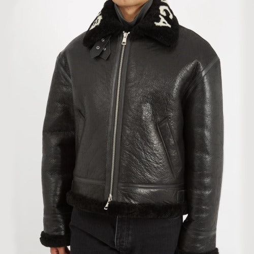 발렌시아가 로고 가죽 셔링 무스탕 블랙- 재입고!!!