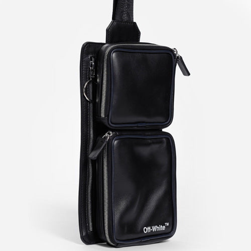 오프화이트 레더 벨트백 블랙