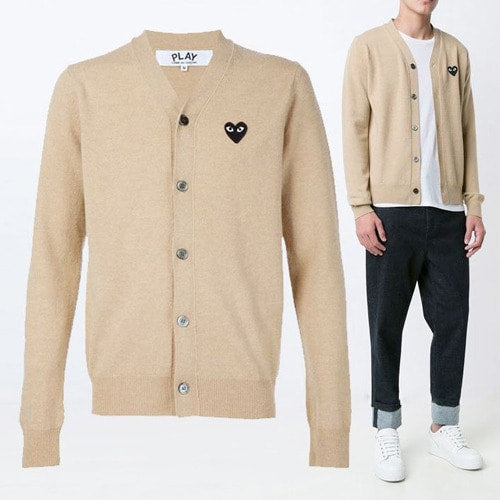 (국내배송, 당일출고) 꼼데가르송 블랙와펜 브이넥 가디건 베이지