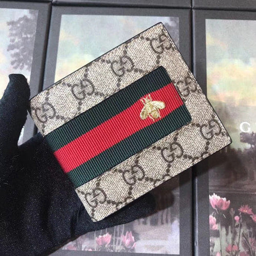 구찌 GG수프림 웹 꿀벌자수 반지갑