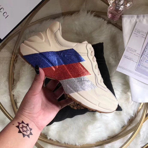 구찌 라이톤 글리터 웹 프린트 가죽 스니커즈