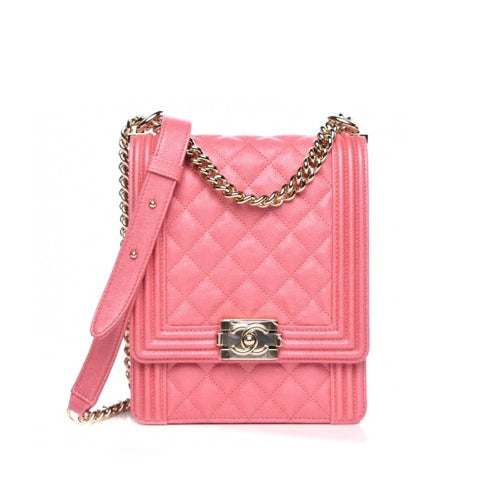 샤넬 퀼팅 캐비어 노스 사우스 보이 플랩 백 핑크